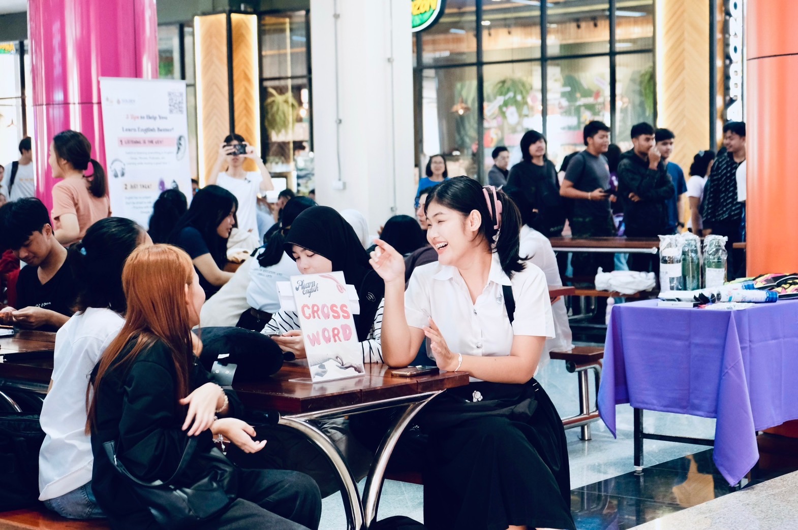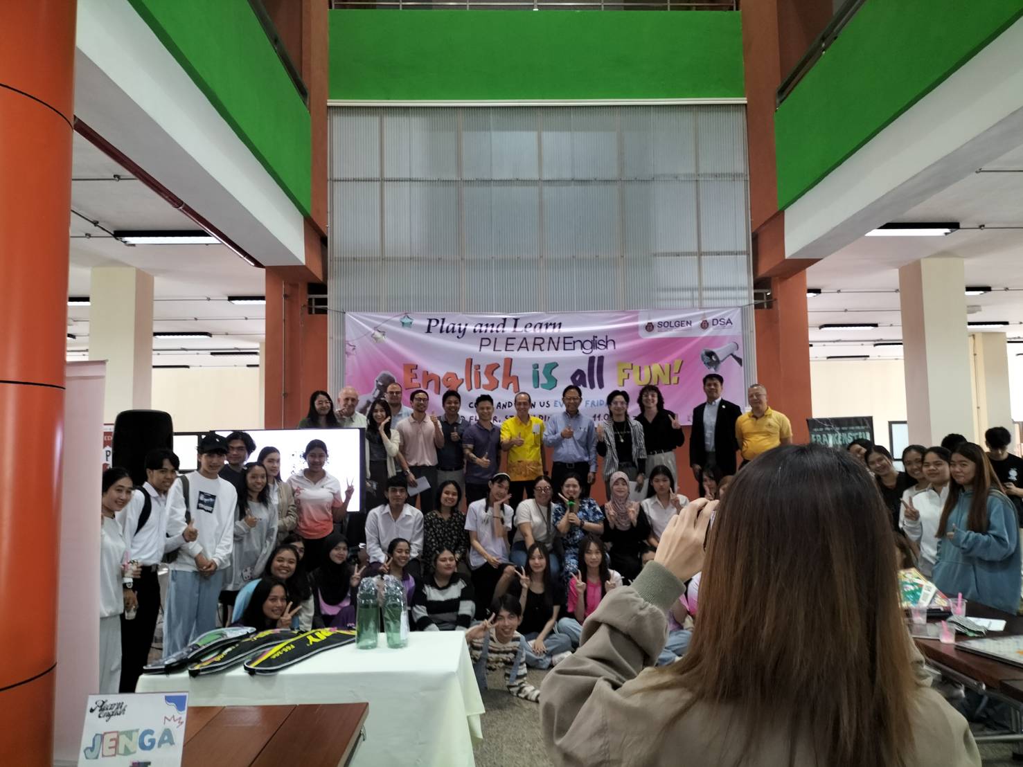การจัดกิจกรรมดังกล่าวเป็นกิจกรรมส่งเสริมการเรียนรู้ภาษาอังกฤษผ่านความบันเทิงในรูปแบบต่าง ๆ ทั้งการสร้างคำศัพท์ จาก Crossword games การออกเสียงคำศัพท์ภาษาอังกฤษจากแท่งไม้ Jenga การทำ Roleplay เพื่อสั่งไอศกรีม ทั้งนี้ก็เพื่อให้นักศึกษาคุ้นเคยกับภาษาอังกฤษได้เป็นอย่างดี และการออกบูทประชาสัมพันธ์ละครเวทีภาษาอังกฤษของนักศึกษาชมรม English Drama Club
