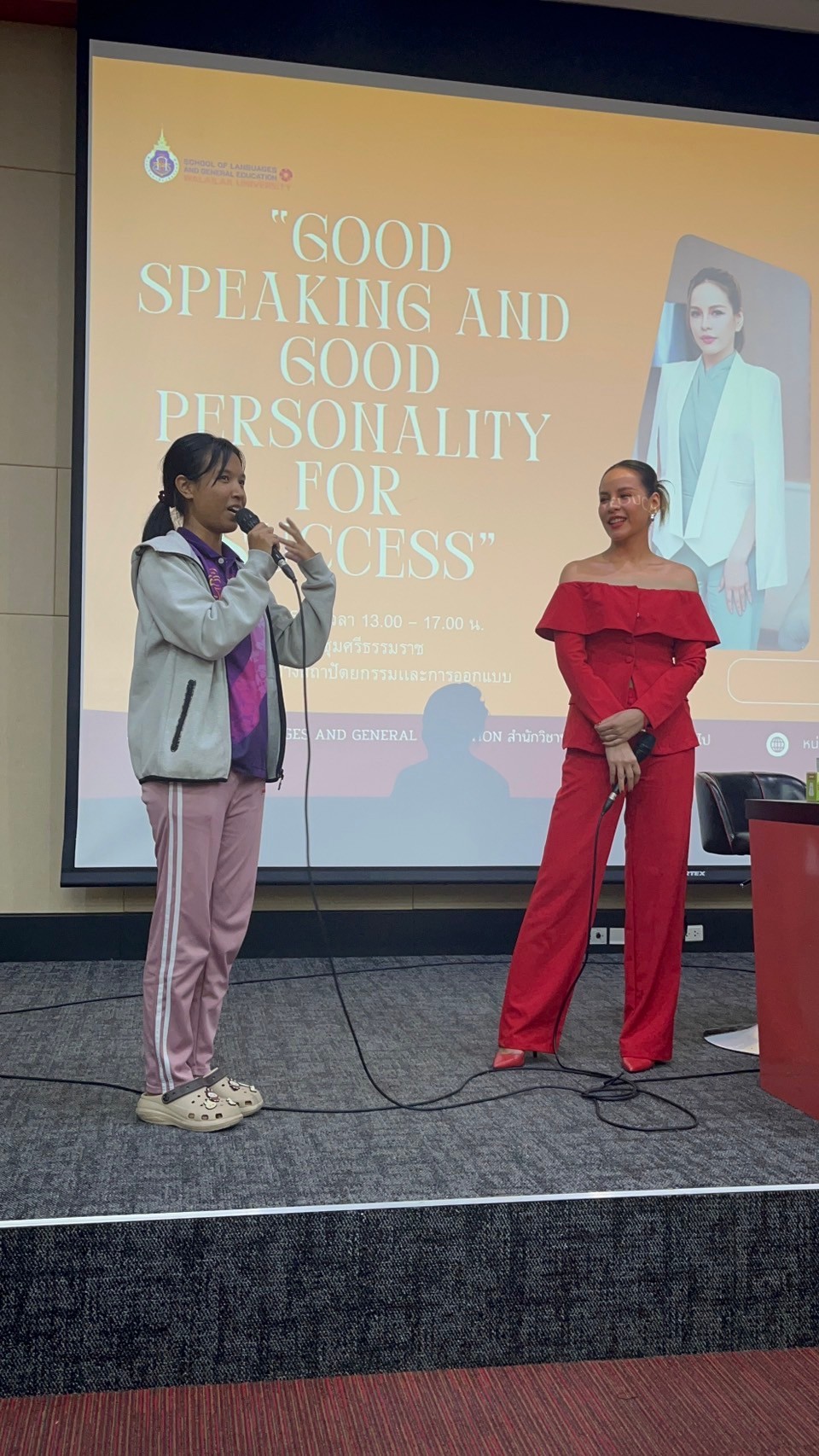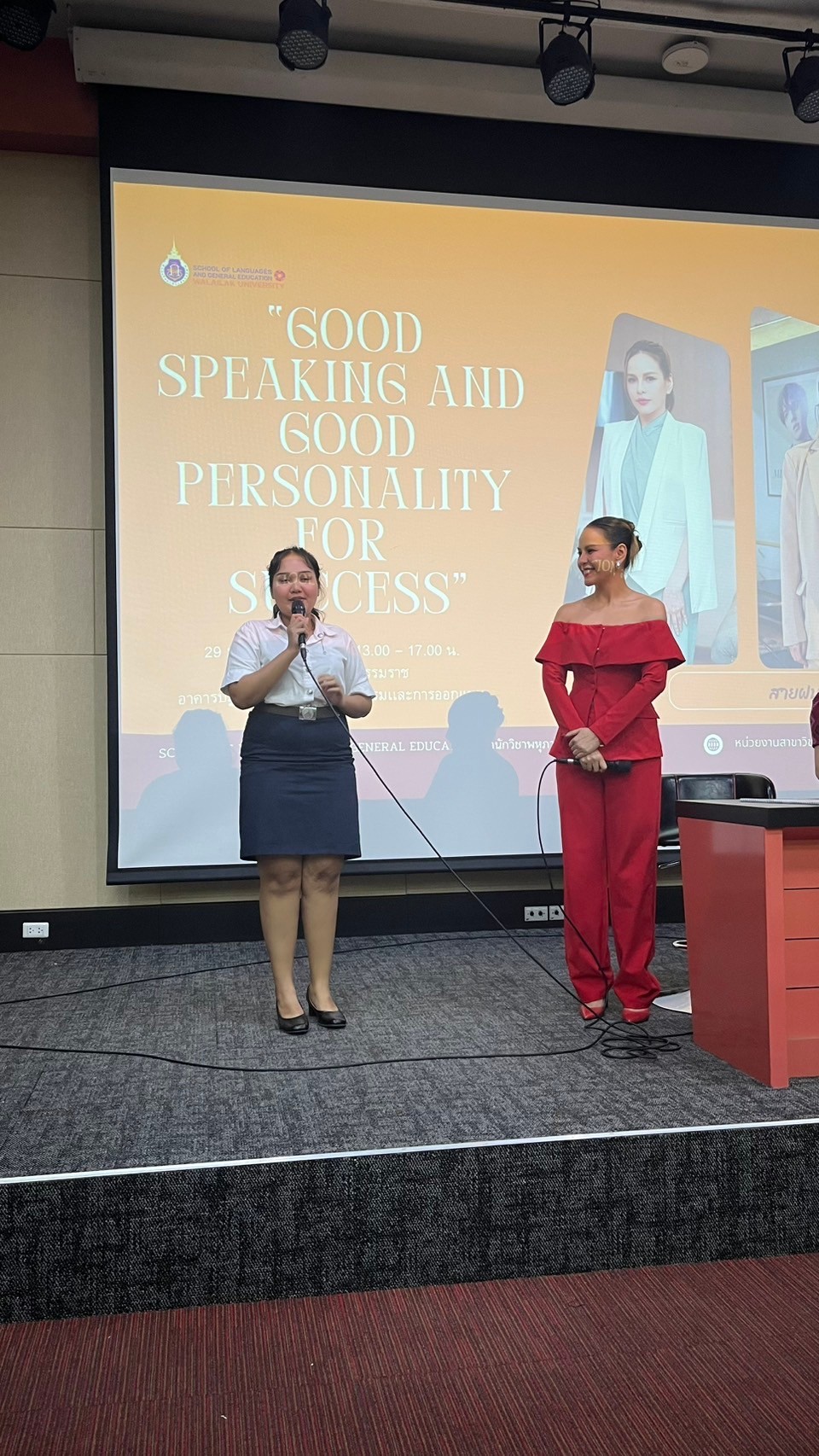 เมื่อวันที่ 29 มกราคม 2568 เวลา 13.00-17.00 น. ณ ห้องประชุมศรีธรรมราช อาคารปฏิบัติการทางสถาปัตยกรรมและการออกแบบ คณาจารย์กลุ่มวิชาภาษาไทย สาขาวิชาศึกษาทั่วไป จัดโครงการการพัฒนาบุคลิกภาพ ในหัวข้อ “Good Speaking and Good Personality for Success“ ครั้งที่ 5 โดยได้รับเกียรติจาก วิทยากร คุณสายฝน ชีช้าง ผู้ประกาศข่าวช่อง 3 ซึ่งเป็นผู้ที่มีความรู้และมีประสบการณ์โดยตรงในเรื่องการพัฒนาบุคลิกภาพและการพูดเพื่อการนำเสนอ มาร่วมเสวนาแลกเปลี่ยนประสบการณ์จากการทำงานจริงในครั้งนี้