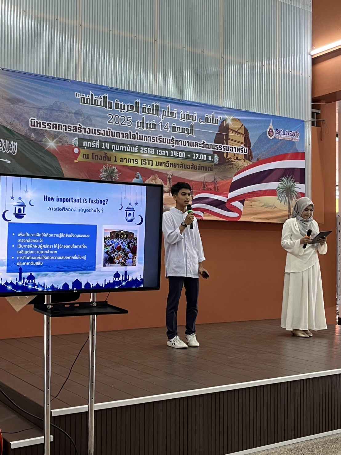 เมื่อวันที่ 14 กุมภาพันธ์ พ.ศ. 2568 สำนักวิชาพหุภาษาและการศึกษาทั่วไป ได้จัดนิทรรศการสร้างแรงบันดาลใจการเรียนรู้ภาษาและวัฒนธรรมขึ้น ณ โถงชั้น 1 อาคาร ST เพื่อนำเสนอผลสัมฤทธิ์การเรียนรู้ในรายวิชา GENF 67-001 ภาษาและวัฒนธรรมอาหรับ ซึ่งเป็นรายวิชาเลือกเสรีของสำนักวิชาที่เปิดในภาคการศึกษา 2/2568 โดยมีเป้าหมายเพื่อให้นักศึกษาในรายวิชาและนักศึกษาทั่วไปของมหาวิทยาลัยวลัยลักษณ์ เรียนรู้และเข้าใจความหลากหลายของวัฒนธรรมเพื่อการอยู่ร่วมกันและการเคารพกันและกันในสังคม