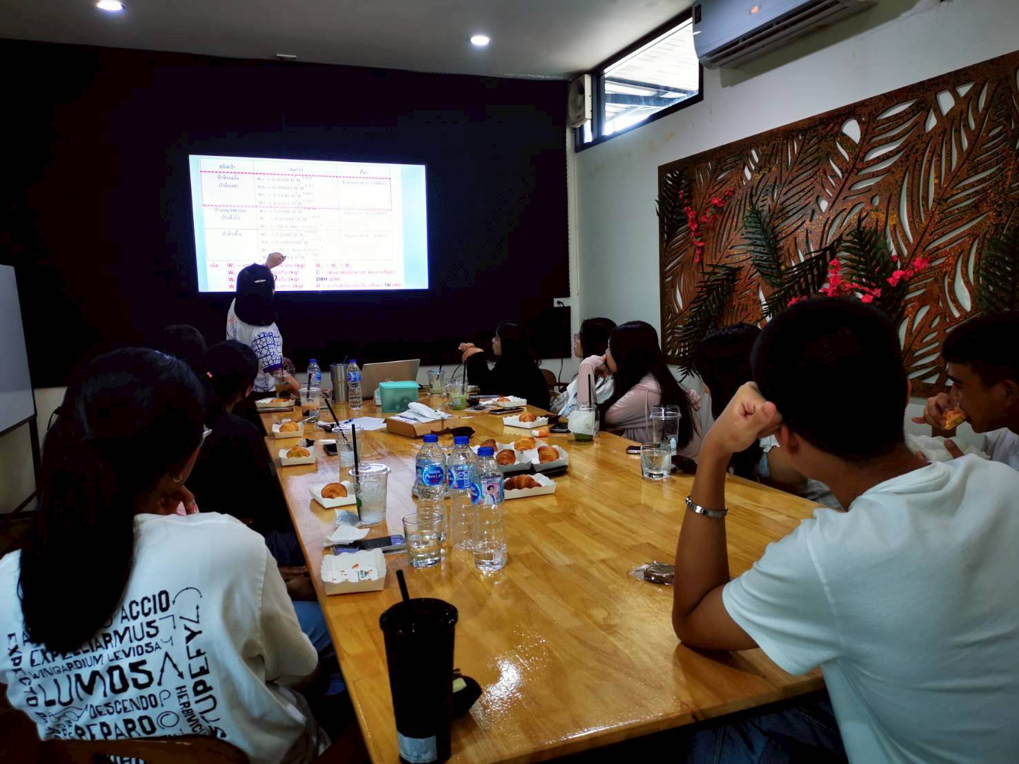 On July 20, 2025, Asst. Prof. Jenjira Kaewrat, form the School of Languages and General Education, has disseminated knowledge and awareness among the youth in the Nakhon Si Thammarat Province. Enhancing communicate knowledge regarding climate change, including its impacts, and to identify strategies for mitigation and adaptation, with a specific focus on carbon credit offsetting in agricultural areas. Under Assessment of Carbon Storage Potential of bamboo in Nakhon Si Thammarat Project at Doi Kham meeting room, Mueang District, Nakhon Si Thammarat Province.