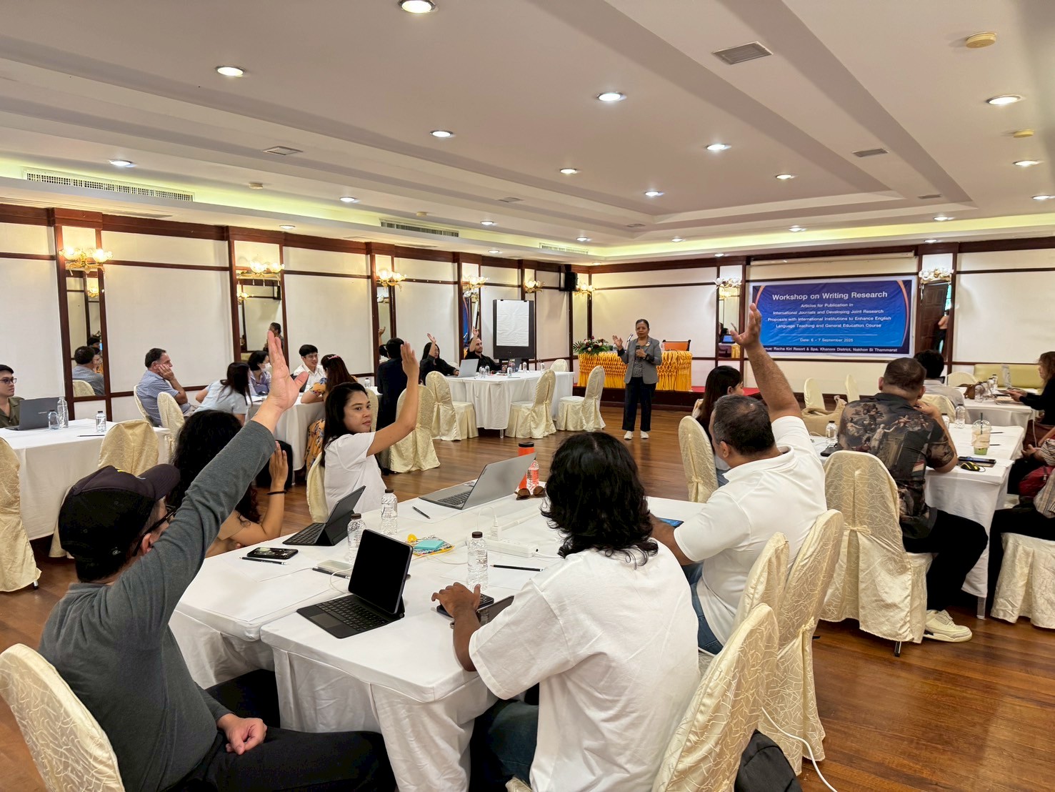 สถานวิจัย สำนักวิชาพหุภาษาและการศึกษาทั่วไป มหาวิทยาลัยวลัยลักษณ์ จัดโครงการ “การเขียนผลงานวิจัยเพื่อตีพิมพ์ในวารสารระดับนานาชาติ และการเขียนข้อเสนอโครงการวิจัยร่วมกับสถาบันต่างประเทศ” ระหว่างวันที่ 6–7 กันยายน 2568 ณ อำเภอขนอม จังหวัดนครศรีธรรมราช โดยมีวัตถุประสงค์เพื่อพัฒนาศักยภาพด้านการวิจัยของคณาจารย์ในสำนักวิชาให้มีความรู้ ความเข้าใจ และทักษะที่จำเป็นในการเขียนผลงานวิจัยและข้อเสนอโครงการวิจัยเพื่อสร้างความร่วมมือกับสถาบันต่างประเทศ
