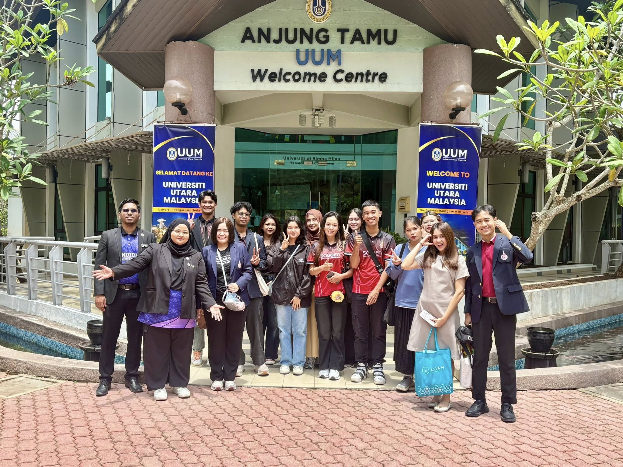 On September 27, 2025, the Student Affairs Office of the School of Languages and General Education (SOLGEN) led 10 Walailak University students to Universiti Utara Malaysia (UUM), where they joined 8 student representatives from the School of Education Student Club to co-organize a Forum Discussion on the topic “Leadership Empowerment and Development: Global Cultural Exchange” from 1:00 p.m. to 3:30 p.m.