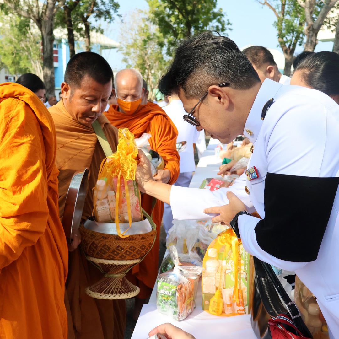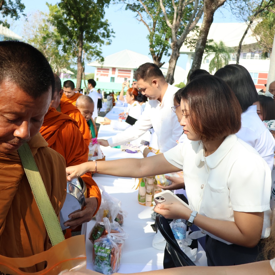 Lecturers and staff from the School of Languages and General Education took part in offering alms to 34 monks on the morning of March 27, 2026, at the parking area next to Thaiburi Building, the area near Building 5. The ceremony was held to bring good fortune on this special occasion of the university.
