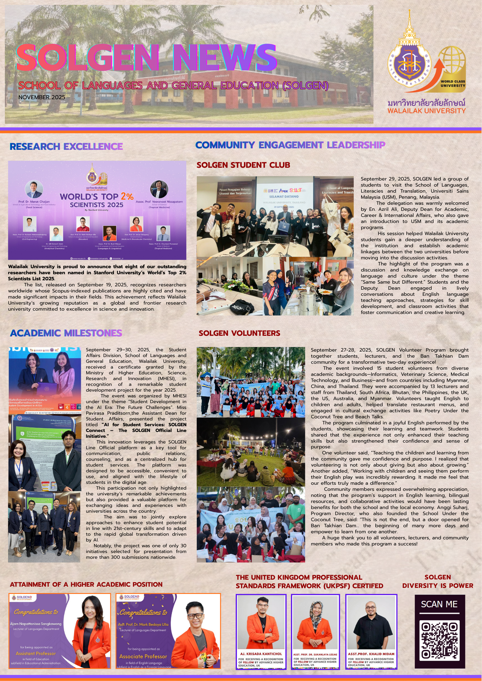 มหาวิทยาลัยวลัยลักษณ์ เดินหน้าอย่างภาคภูมิใจสู่ความเป็นเลิศระดับโลก รายละเอียดเพิ่มเติม » กุมภาพันธ์ 25, 2026